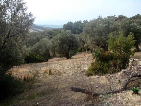 Das Grundstück liegt durch eine Olivenhainen geschützt in ruhiger Lage an der Triopetra-Akoumia Strasse, 4 km vom Meer entfernt. 16 grosse Oliven- und 8 Johannisbrotbaumen befinden sich auf dem Grundstück, Wasser-und Stromanschlüsse liegen auf dem Gelande und eine topographische Karte steht zur Verfügung. Das Gelande erreichen Sie von der Akoumia Strasse, aber auch von einer Strasse vom Strand aus. Vom oberen Bereich des Grundstücks haben Sie ein Blick aufs Meer.