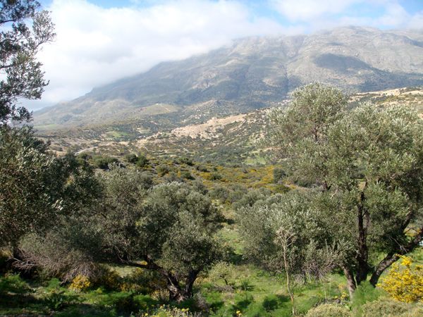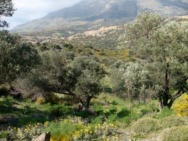 Das Grundstück in geschützter Lage. Vom obersten Punkt haben Sie den Blick in Richtung der Mündung des Flusses, der neben Triopetra Strand ins Meer führt. Das Land ist flach abfallend und es gibt mehrere grosse Olivenbaume. Wasseranschluss liegt auf dem Grundstück.