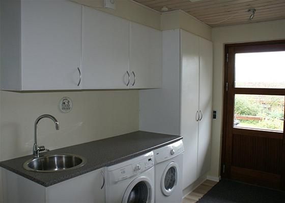 Villaen er indrettet med god entre/fordelingsgang. Dejlig lys stue med brændeovn og udgang til stor terrasse. Stort flot køkken/allrum med ly...