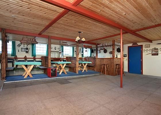 Rødstensbygning fra 1955 på 174 kvm , med eternittag. Bygningen er indrettet med stor gildesal/aktivitetsrum * Hobbyværksted *Brænderum. Maskinhal fra 2002 på 170 kvm. der fremtræder i stålsider med eternittag og gulv i SF-sten samt garage m. elport.