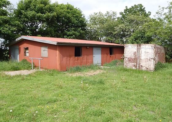 Herudover carport samt tidligere jernbanevogn med 3 hestebokse