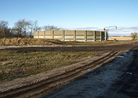 Produktionen foregår i fuldspaltet V-stald fra 1998 samt stalde som er ombygget i 2005/2006, hvor 2/3 er spalter og resten fast gulv. Tørfodring. Træk & Slip.