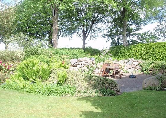 Ejendommen fremtræder 3-længet og velbeliggende i landskabet med parklignende have, køkkenhave, beplantninger med frugttræer og særdeles velanlagt prydhave med flere lune hjørner/terrasser.