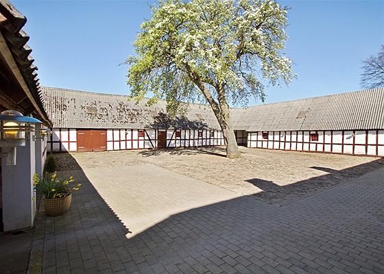 Den lukkede gårdsplads og sydvendte terrasse betyder mange små oaser med læ og sol i pagt med de skønne omgivelser ved bygningerne og haven.