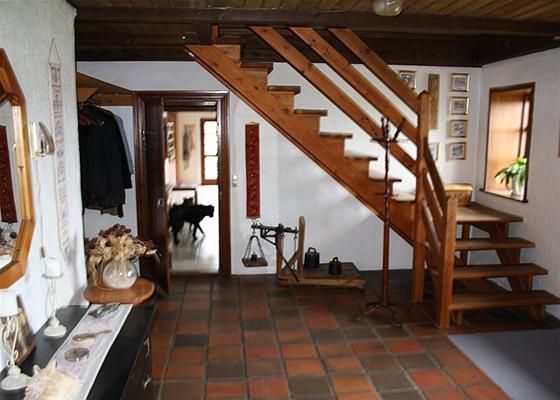 Dejlig stort og rummeligt stuehus indrettet med stor entre/hall med klinkegulv og trappe til 1. sal. Fra entreen er der både adgang til værelse/kontor og til soveværelset med tilhørende badeværelse med dobbet vaskarrangement og muret bruseniche. Fra entreen går man ind i et stort køkken/alrum med spiseplads og opholdsafdeling. Et centralt rum i huset, hvorfra der bl.a. er adgang til en evt. teenage- eller kontorafdeling med egen indgang og eget badeværelse. Køkken/alrummet har et mindre tilstødende rum, p.t. anvendt som viktualierum. Desuden er der udgang til terrasse - en dejlig udendørs spiseplads lige udenfor køkkenet, og praktisk gennemgang gennem baggang/vaskerum til garage/værksted. 1. sal indeholder stort gavlværelse, der tidlgere har været opdelt i 2 pænt store værelser. Rummelig repos. 2 værelser og uudnyttet loftsrum, der let kan omdannes til værelse. Stor stue, der benyttes som spisestue og tv stue. Fra stueafdelingen er der gennem flotte vinduespartier i gavlen, en pragtfuld udsigt.