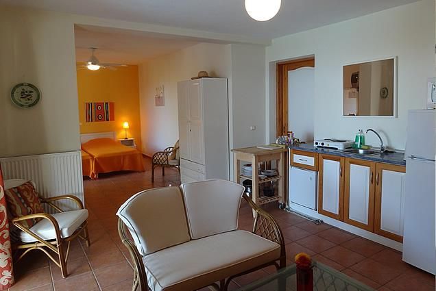 ? 3 geräumige Studios mit Küchenzeile Einheit und WC / Bad mit Dusche und direktem Zugang zum Garten, Swimmingpool.