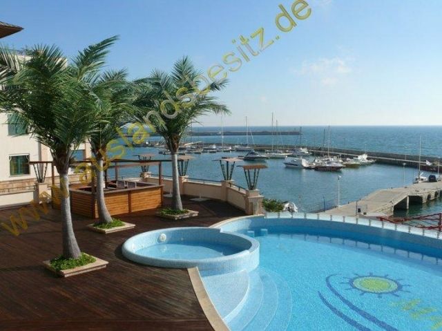 Möblierte luxuriöse Appartementanlage erste Meereslinie nah am Jachthafen und Botanischen Garten in Baltschik. Der Komplex liegt einige Minuten vom Stadtzentrum und dem Strand entfernt, in der unmittelbaren Nähe des einmaligen Botanischen Gartens und des Schlo?es der rumänischen Königin Maria.