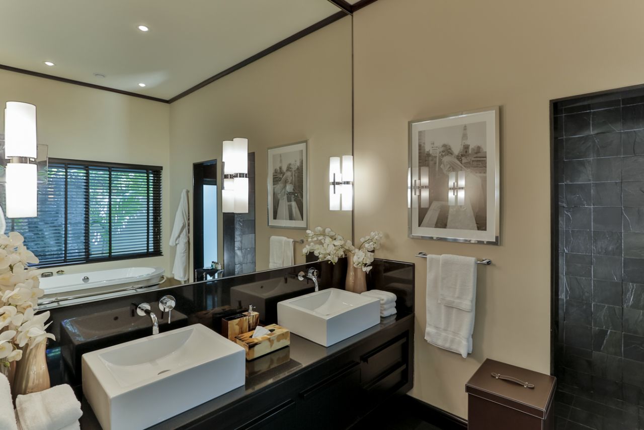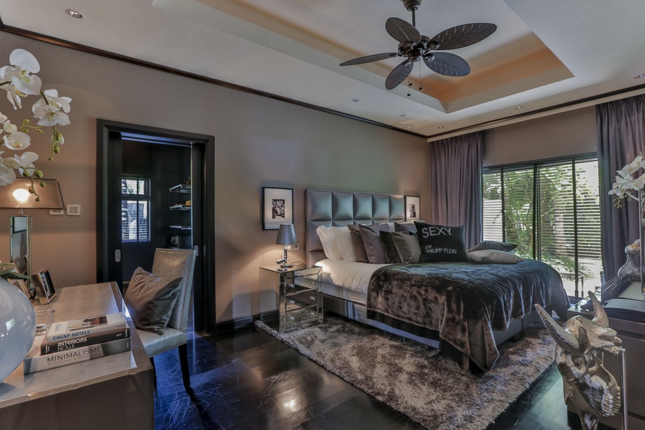 The villa benefits from an American kitchen opening onto a breakfast terrace, a spacious living room, a dining room and a landscaped atrium. Master bedroom with outdoor shower. Many annexes and dressing rooms, laundry and parking for 3 cars.