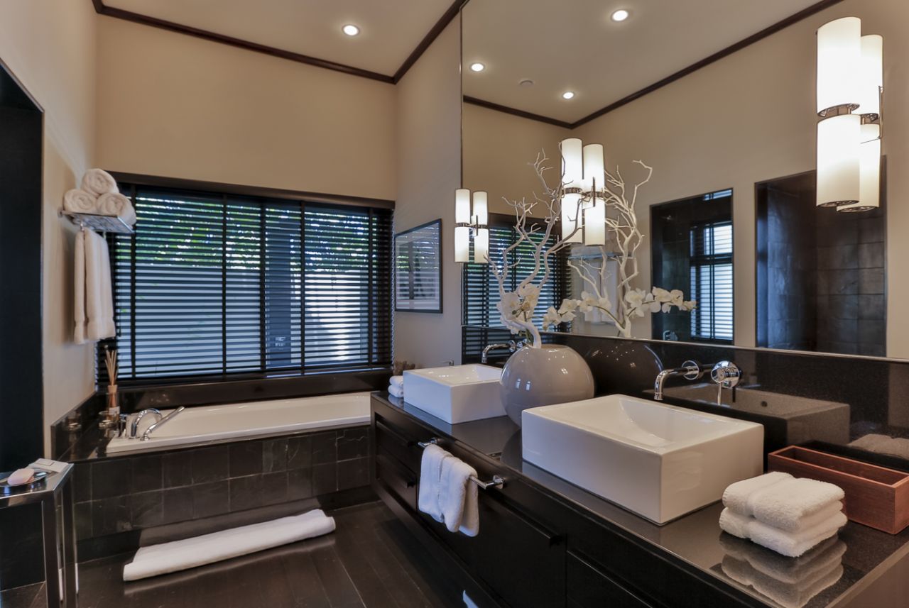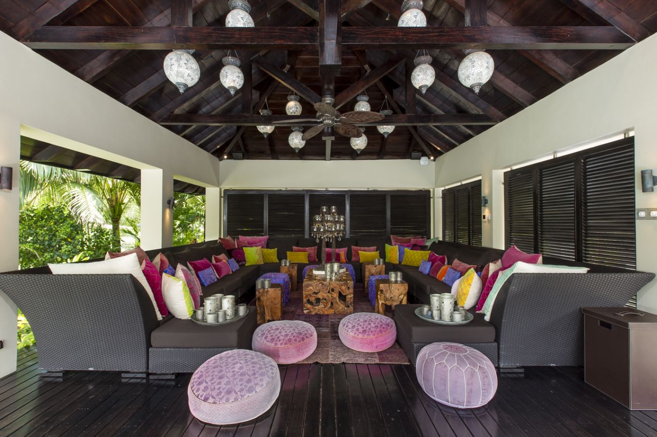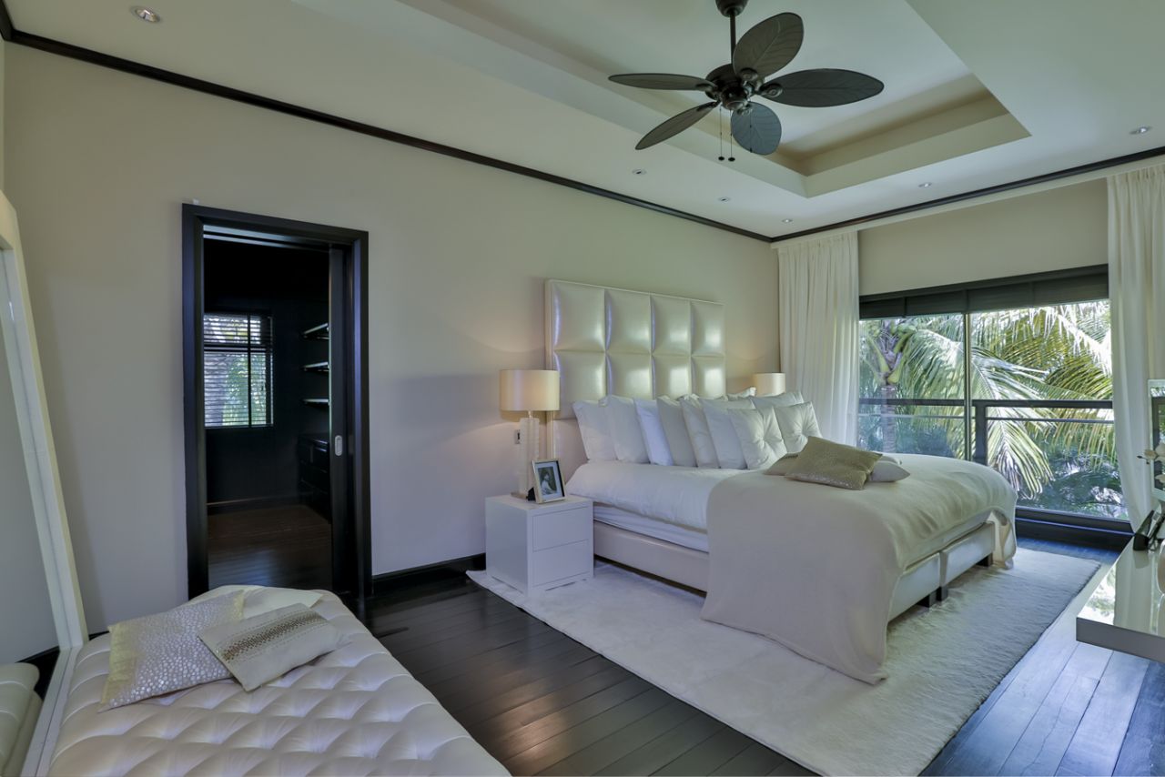 Villa in the new Mauritian style with an area of 485 m2 with a large terrace of 120 m2, on a plot of 2002 m2, furnished with a living space and an infinity pool. The side wing, composed of 3 bedrooms en suite and a large living room, offers a view overlooking the terrace, the garden, golf and the sea.