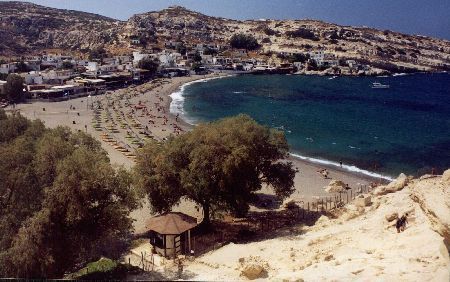Grundstueck, 2.400 qm, mit 2 Gebaeuden, 350 qm und 35 qm, in Matala, Suedkreta.