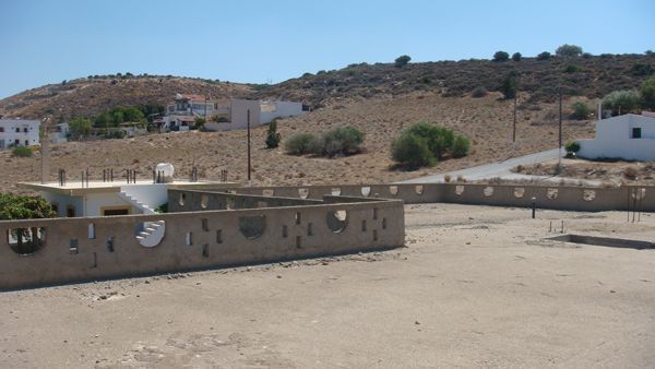 Kalamaki Strand, Süden Kretas. Halbfertiges 2-geschossiges Hotelgebaude, nur wenige Meter vom Meer e.......