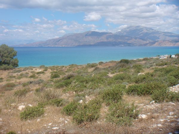 Das Grundstück misst 2.200 m² und hat einen tollen Panoramablick auf das Libysche Meer in Richtung der Paximaden. Das Grundstück ist flach und kann über eine Schotterstrasse erreicht werden. Wasseranschluss liegt auf dem Grundstück. Das Dorf Pitsidia ist nur eine kurze Fahrt entfernt, hier gibt es Restaurants, Cafes und Geschafte.