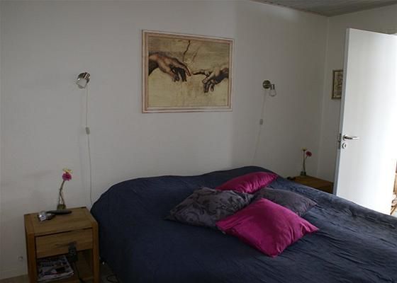 Dejligt soveværelse med skabe. 2 børneværelser, hvoraf det ene har direkte udgang til terrasse og have. Både stue og værelser har flotte nye askeparketgulve. Rigtig pænt badeværelse med god bruseniche og flot nyt skabsmiljø og toilet. På badeværelset er der også plads til vaskemaskinen. Pæne lyse trælofter over alt. I gangen er der loftlem med trappe..