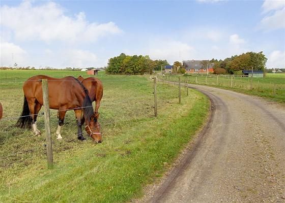 Hesteejendom beliggende vest for Horne med kort afstand til Hovedvej A11. Der er tilkørsel til ejendommen fra offentlig grusvej via privat grusvej.