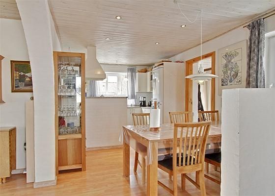 Indeholder: Kombineret entre / bryggers med klinkegulv med gulvvarme, og garderobeplads. Stort og rummeligt badeværelse med lyse klinker, gulvvarme, håndklædetørrer, samt stor bruseniche. Hyggeligt spisekøkken med pænt lyst inventar og laminatgulv, i åben forbindelse til: TV-stue med laminat gulv. Soveværelse med skabe. Trappe til 1. sal med: Stort repos/stue med loft til kip, synlige bjælker, opgang til hems. 2 regulære børneværelser med skabe.