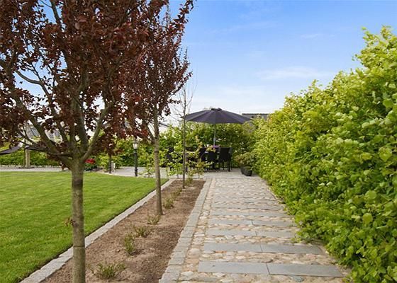 Brolægningsarbejdet rundt om villaen er af ypperste kvalitet og ikke ret mange steder finder du en så konsekvent ensartet løsning.