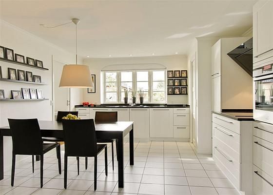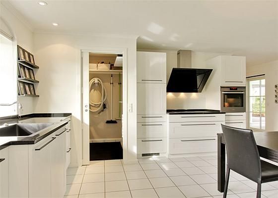 Stilen og materialevalget er gennemført og konsekvent med ens klinker, ens inventar i køkken og badeværelser, flotte egetræsgulve lagt som sildebensparket, granitbordplader, lyse og indbydende rum, opdeling i forældre- og børneafdeling, energi- og allergivenligt, kort sagt - et sted hvor der bare er tænkt over tingene.