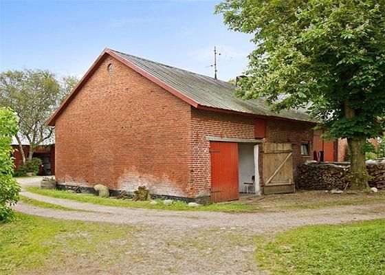 massive plankegulve, bygninger opført i røde teglsten, der er gode og brugbare udhuse, og en rigtig hyggelig lukket gårdsplads.