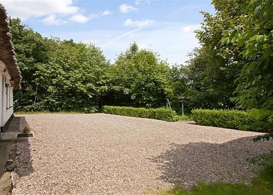 Til ejendommen hører et lille charmerende stråtækt stuehus med en lille stald i enden, som evt. kan inddrages til beboelse. Boligen indeholder entre, køkken, stue, sove...
