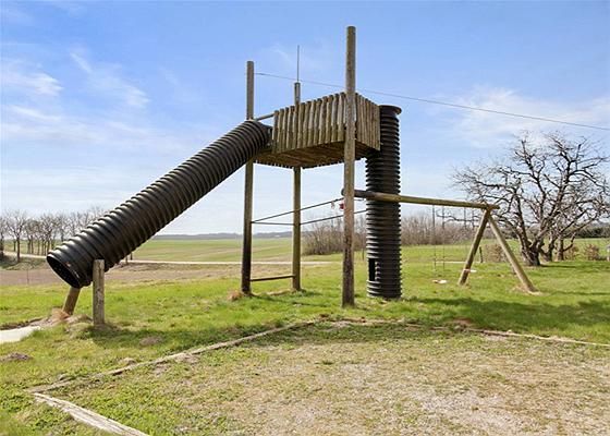 Bestående af Stuehus/bolig, omgivet af have og lukket gårdsplads. Hvorfra der er udsigt over området og dets kuperet terræn bestående af skov og åbne marker.