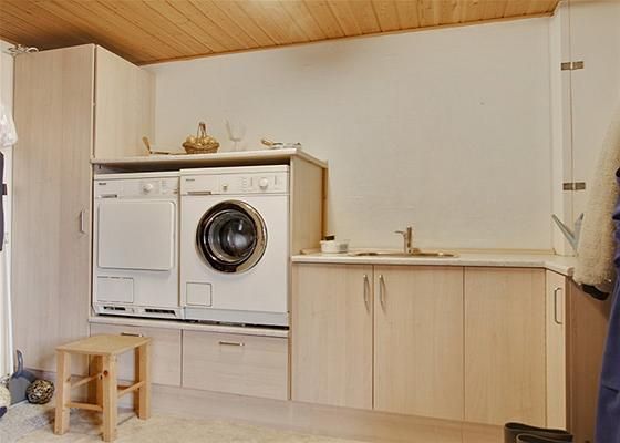 I 2009 er der installeret et fastbrænselsfyr i udhus, så forbruget selv med en stor famile kan holdes på ca. 40 m3 træ om året.