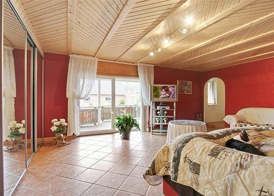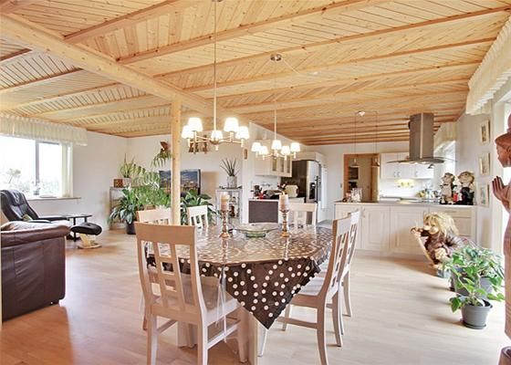 Her er gulvvarme i alle rum og flotte trælofter overalt i huset.