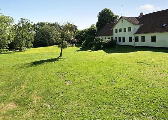Fra stuehuset er der udsigt til den parklignende have som er omkranset af store træer b.l.a et sjældent platantræ, rhododendrenbuske mv. Til parken hører også en stor sø med et rigt dyreliv og springvand drevet af solceller.