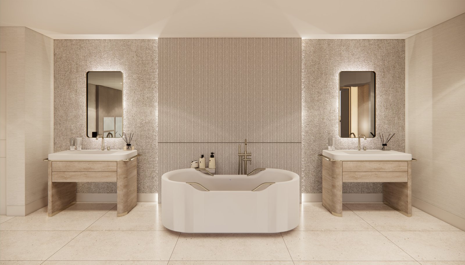 Armani tasarımı banyolar, çerçevesiz yağmur duşu ve özel tasarım küvetler