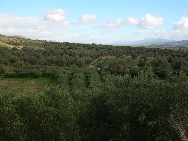 Grundstueck in Kalamari, Suedkreta, bewachsen mit Olivenbaeumen.