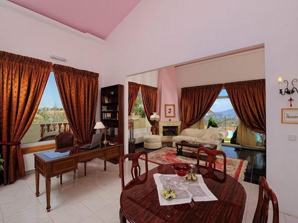 Die Villa liegt auf einem Hügel mit spektakularem Blick auf das Meer, Dia Insel, die Lasithi Gebirge und die umgebenden Weinberge und Olivenhaine. Das Dorf Agios Myronas ist 200m entfernt, hier finden Sie alles Notige, wie eine Post und einen Supermarkt. Die Stadt Heraklion ist 14km entfernt. Die Villa besteht aus 3 Gebauden auf einem Grundstück von 4.000 m² . Das Hauptgebaude misst 595 m² über 3 Etagen. Es gibt 6 Zimmer, alle mit eigenem Bad und Hydromassage-Dusche, 5 Wohnraume / Loungen und mehrere Küchen und einen Weinkeller. Die Villa ist so gebaut, dass sie als ein Einfamilienhauses bewohnt oder in 5 separaten Luxus Wohnungen aufgeteilt werden kann. Das zweite Gebaude ist 100 m² gross, wurde als Spa genutzt und hat einen 50 m² grossen Keller. Es kann auch als Unterkünft umfunktioniert werden, da es über Bader und Bereiche für Schlafzimmer verfügt. Das dritte Gebaude ist komplett verglast und hat mit Holzboden. Es bietet einen tollen Blick auf das Meer und wird als Esszimmer genutzt. Es gibt eine Küche mit professioneller Ausstattung, sowie ein Bad und WC. Die weitlaufige Anlage hat schone Garten, einen Grillplatz, ein grossen Pool und ein Kinderbecken. Es gibt eine Garage für 12 Autos, Sicherheitssysteme, Satellit und ADSL Wireless. Die Villa wird komplett mit allen luxuriosen, hochwertigen Armaturen und Einbauten verkauft und ist bereit für den sofortigen Einzug.