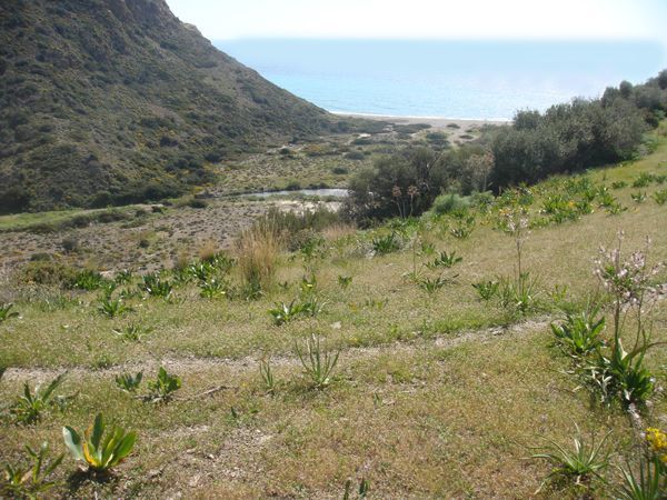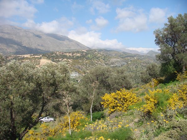 Das Grundstück in geschützter Lage. Vom obersten Punkt haben Sie den Blick in Richtung der Mündung des Flusses, der neben Triopetra Strand ins Meer führt. Das Land ist flach abfallend und es gibt mehrere grosse Olivenbaume. Wasseranschluss liegt auf dem Grundstück.