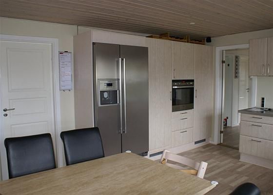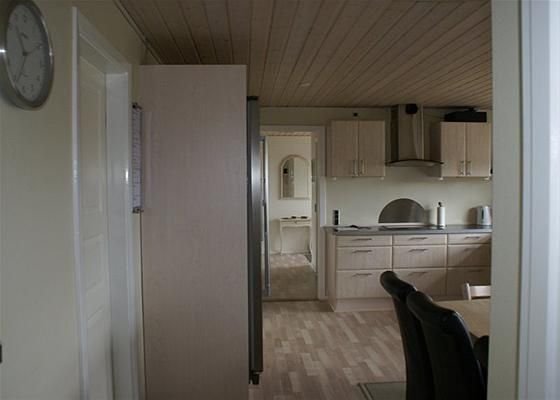Villaen er indrettet med god entre/fordelingsgang. Dejlig lys stue med brændeovn og udgang til stor terrasse. Stort flot køkken/allrum med ly...