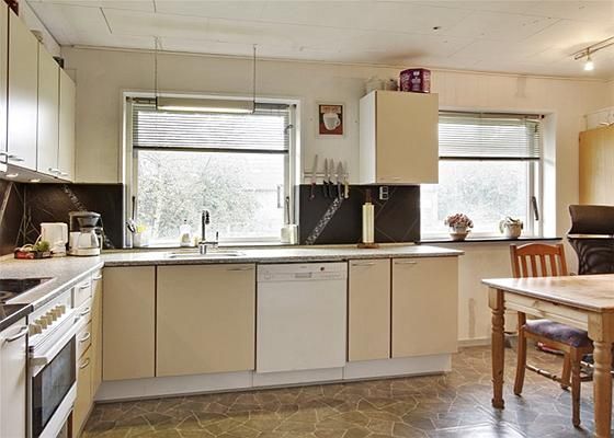 Indeholder: Entre med inst. for vaskemaskine og tørretumbler * Køkken / alrum med pænt køkken * 2 stuer, hvoraf den ene har dør til haven * Stort værelse * Badeværelse med bruseniche, fliser til loft, gulvvarme * 2 værelser - anvendes som soveværelse med afd. med løse skabe.