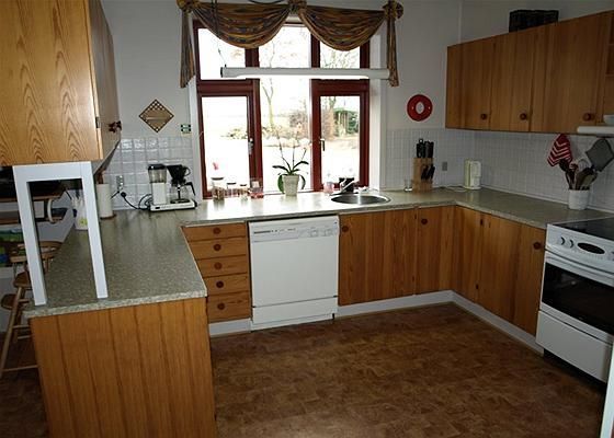 Pænt stuehus med godt boligareal 221 m² incl. 19 m² havestue. Indeh. bl.a.: Entre med opgang til 1. sal, Badeværelse med brus og kar, Stort køkken/alrum med klinkegulv, Vinkelstue med brændeovn og åben forbindelse til havestue, Stor baggang/grovkøkken. 1. sal med stor stue, 3 værelser og toilet.