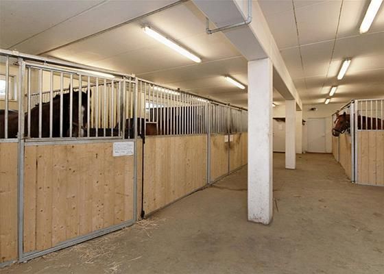 I den sidste del er der opført hestestald, personalerum, div. opbevaringsrum, toilet.