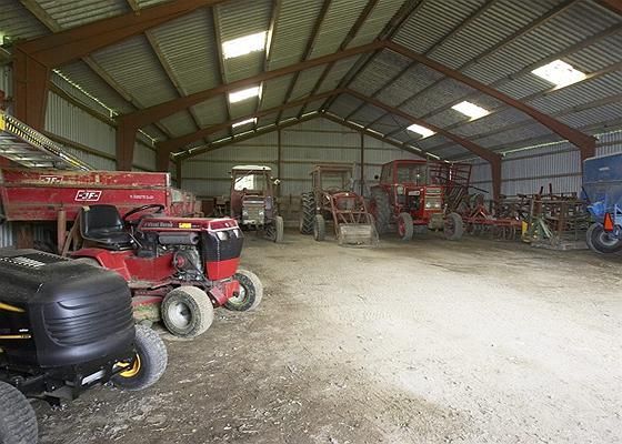 De 3 længer omkring gårdspladsen på i alt ca. 825 m² er velegnet til flere formål - herunder til indretning af høje og store hestebokse med masser af lysindfald.