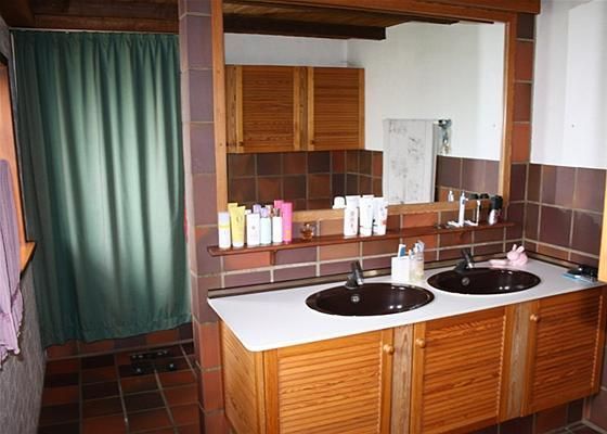 Dejlig stort og rummeligt stuehus indrettet med stor entre/hall med klinkegulv og trappe til 1. sal. Fra entreen er der både adgang til værelse/kontor og til soveværelset med tilhørende badeværelse med dobbet vaskarrangement og muret bruseniche. Fra entreen går man ind i et stort køkken/alrum med spiseplads og opholdsafdeling. Et centralt rum i huset, hvorfra der bl.a. er adgang til en evt. teenage- eller kontorafdeling med egen indgang og eget badeværelse. Køkken/alrummet har et mindre tilstødende rum, p.t. anvendt som viktualierum. Desuden er der udgang til terrasse - en dejlig udendørs spiseplads lige udenfor køkkenet, og praktisk gennemgang gennem baggang/vaskerum til garage/værksted. 1. sal indeholder stort gavlværelse, der tidlgere har været opdelt i 2 pænt store værelser. Rummelig repos. 2 værelser og uudnyttet loftsrum, der let kan omdannes til værelse. Stor stue, der benyttes som spisestue og tv stue. Fra stueafdelingen er der gennem flotte vinduespartier i gavlen, en pragtfuld udsigt.
