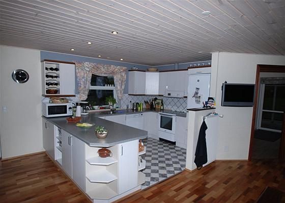 Huset er i stueplan indrettet med en flot baggang/hall der fungerer både som indgangsparti og det centrale fordelingsrum til husets forskellige afdelinger. Her er flere skabe, garderobe og et afskærmet rum til oliefyret (fungerer også som varme/tørreskab). Stueetagens opholdsafdeling er indrettet med stort køkken/alrum, hvorfra der er adgang til praktisk viktualierum, kontor/værelse og dobbelt fransk dør til stue med brændeovn. Fra køkken/alrum er der endvidere adgang til husets pool-afdeling, hvorfra der er direkte adgang til badeværelse/omklædning, samt terrassedør til flisebelagt, skærmet terrasse. Desuden er der toilet, walk-in påklædningsværelse og separat afdeling med badeværelse, værelse og stue/gildesal med åbent køkkenarrangement. Denne afdeling har desuden egen yderdør. 1. sal er nyere og indrettet med 3 gode værelser, pænt toilet og fantastisk opholds-/udsigtsstue. Der er central støvsuger i stuehuset.