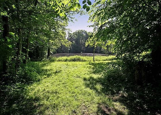 Fra stuehuset er der udsigt til den parklignende have som er omkranset af store træer b.l.a et sjældent platantræ, rhododendrenbuske mv. Til parken hører også en stor sø med et rigt dyreliv og springvand drevet af solceller.